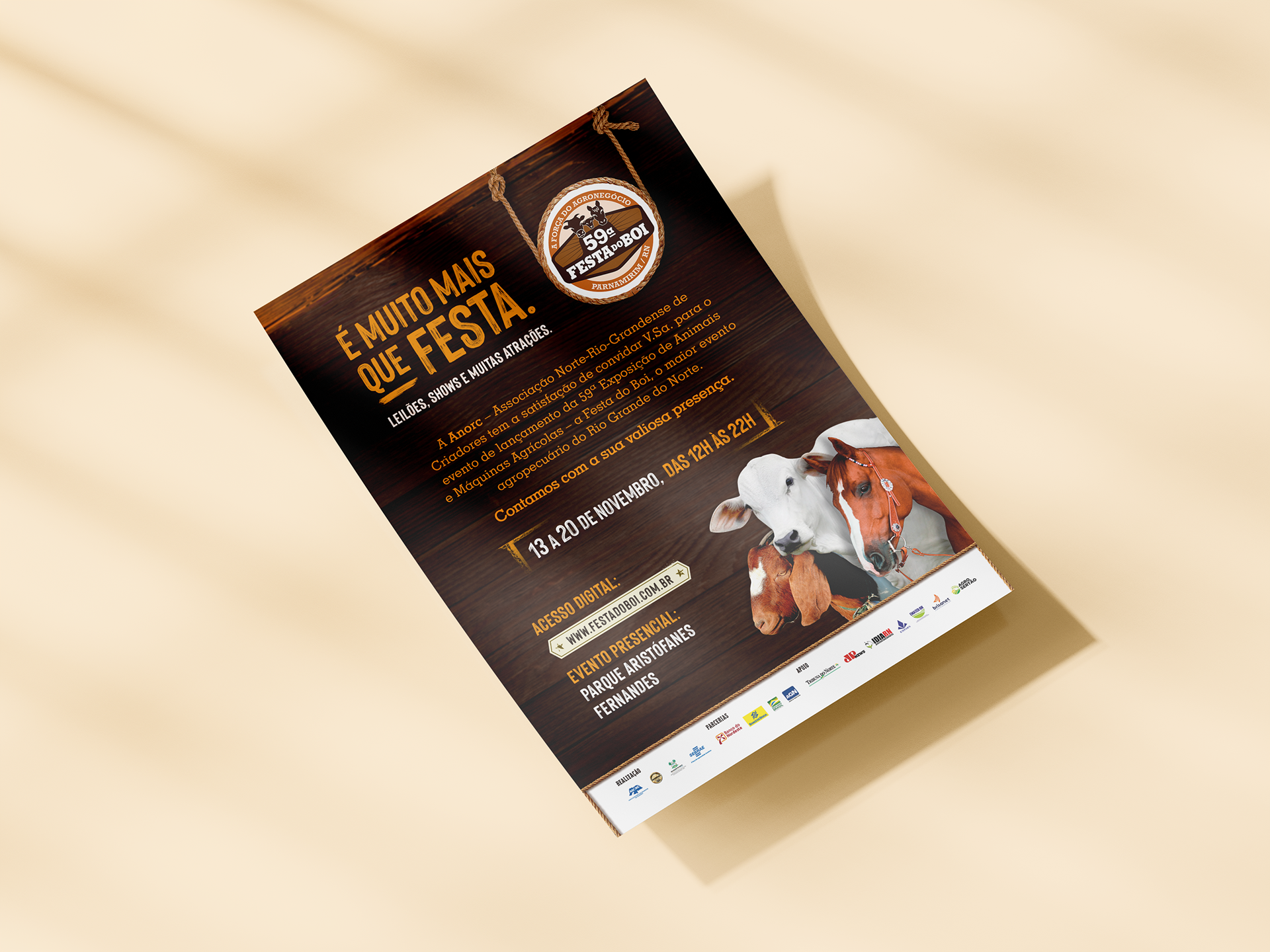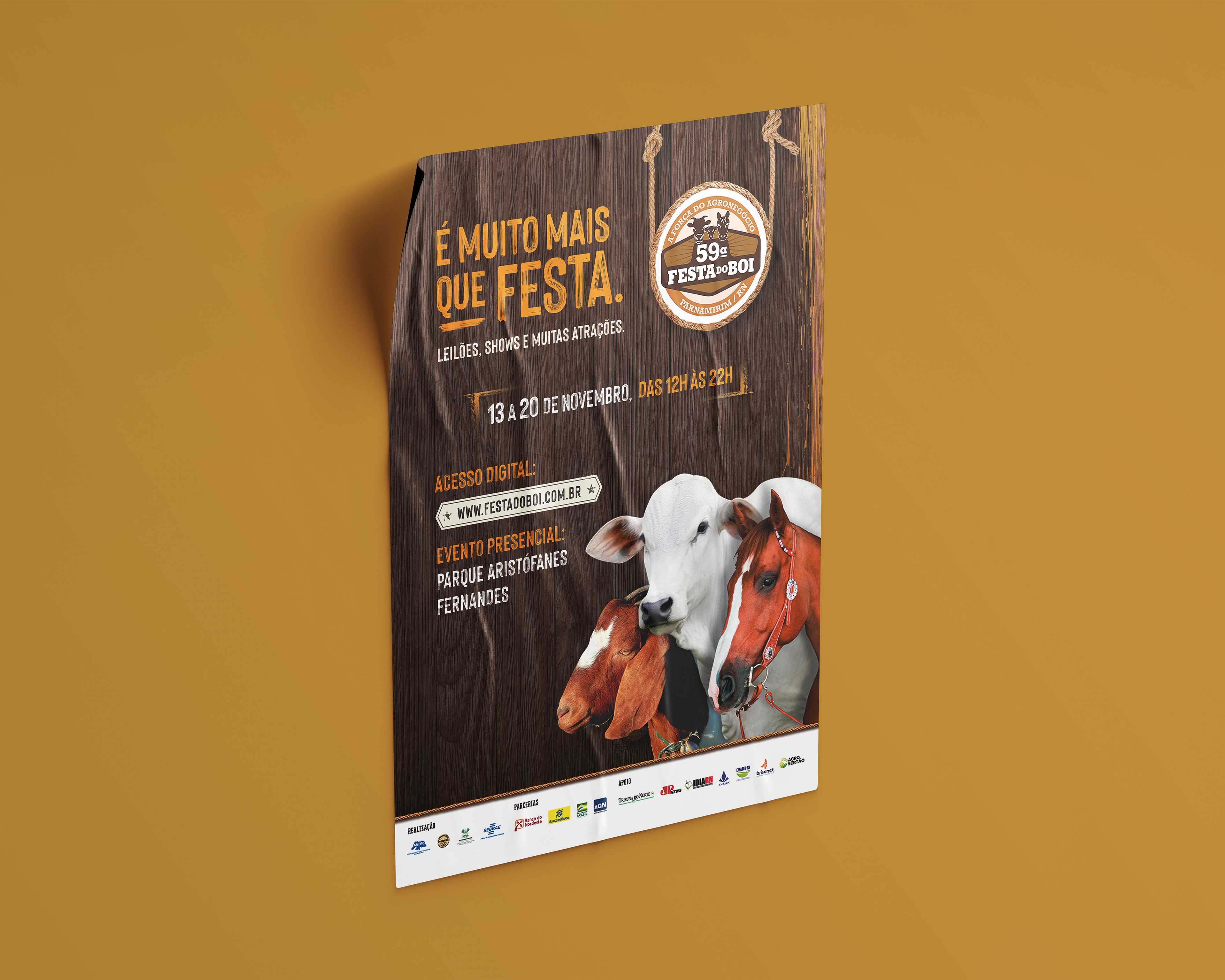 This project showcases the visual identity created for the 59th edition of Festa do Boi, held in 2021, one of the most traditional and iconic events in Northeastern Brazil. Held annually in Natal, the event brings together agricultural exhibitions, cultural performances, food fairs, and musical attractions, drawing thousands of visitors from across the region. The visual proposal includes posters, backbus layouts, and outdoor advertising, featuring a vibrant and contemporary identity that reflects the event’s magnitude and long-standing relevance. The materials were designed to highlight the festive, regional, and welcoming spirit of this celebration, honoring its nearly six decades of history.